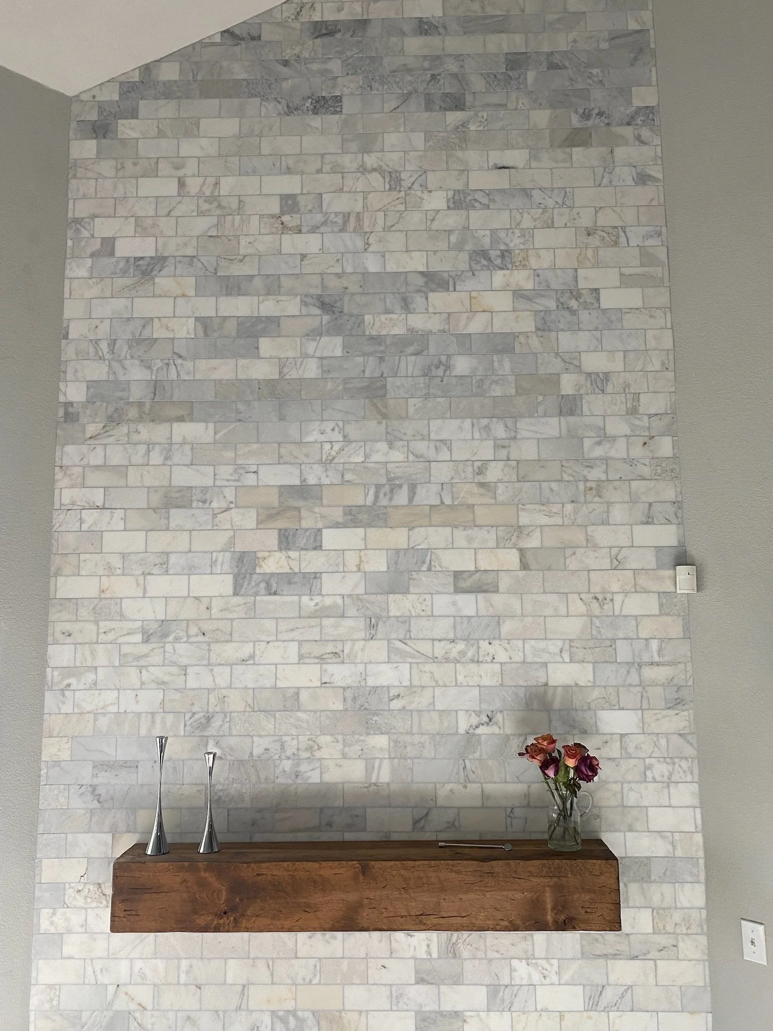 Floor to ceiling marble tile , this is close to 20’ tall!