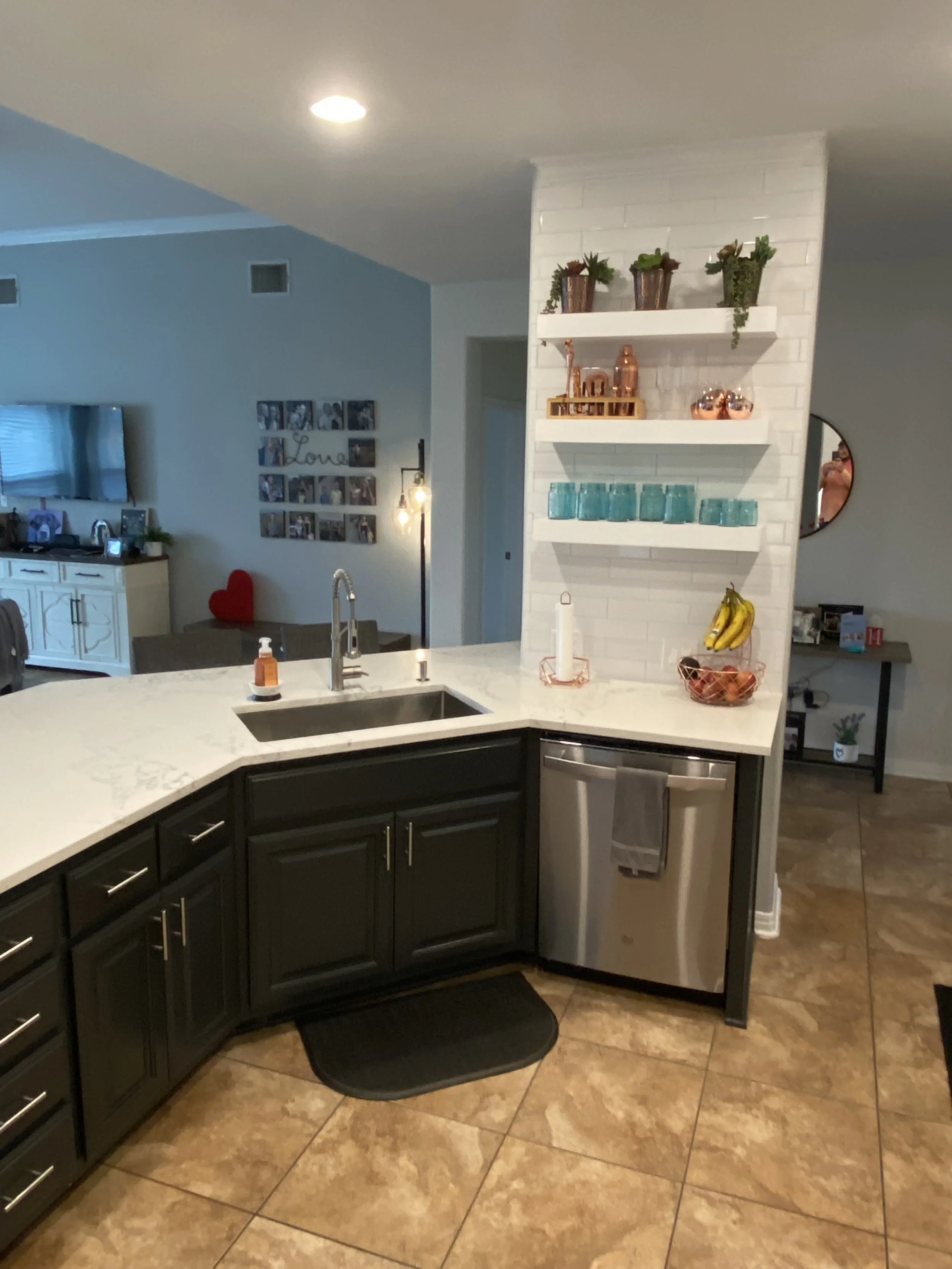 The kitchen remodels can require a lot of phases or just a few. We offer entire remodels or just countertops, or backsplash, or refacing, even custom cabinets! We try to meet everyone at the level they want to accomplish.
